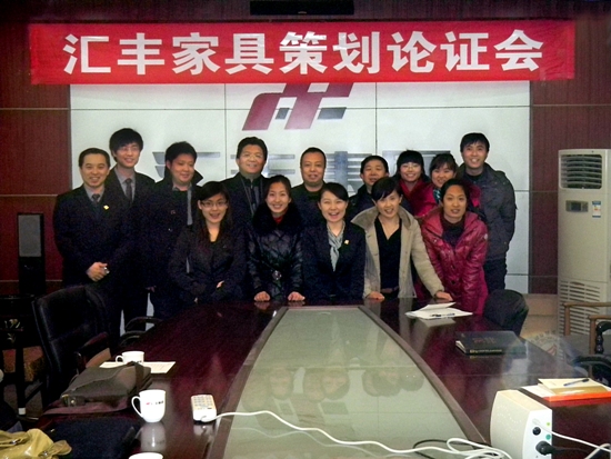 2011年1月7日,國(guó)富縱橫總裁趙龍、執(zhí)行總監(jiān)、設(shè)計(jì)總監(jiān)等一行6人奔赴唐山,與匯豐家具高層召開了項(xiàng)目論證會(huì),為企業(yè)指點(diǎn)迷經(jīng),送去打開匯豐振興之門的金鑰匙。